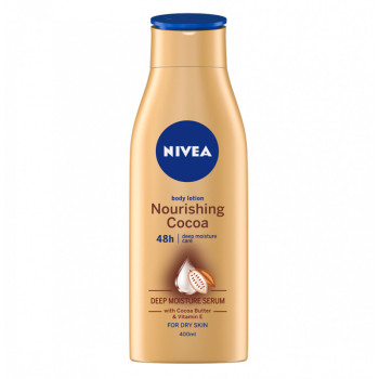 Le LAIT NOURRISSANT BEURRE DE CACAO nourrit intensément la peau pour une hydratation qui dure 48 heures. Il révèle l’éclat naturel de la peau et est idéal pour les peaux sèches à très sèches.